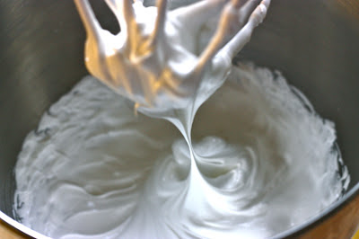 Vispa blandningen med elvisp eller med hjälp av en köksassistent tills blandningen är fluffig och vit, som en marängsmet. Vispa tills blandningen är sval, vilket kan ta upp till 10 minuter.